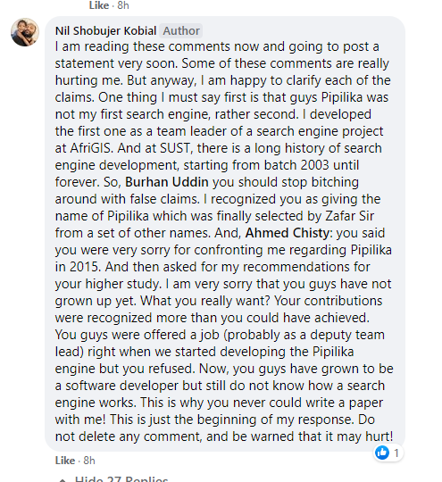 Ironically, the teacher Ruhul Amin Sajib, who came to take credit for this work, himself established our contribution in the first Bangla search engine 'Pipilika' and gave a voice over here. Irony… Watch with video